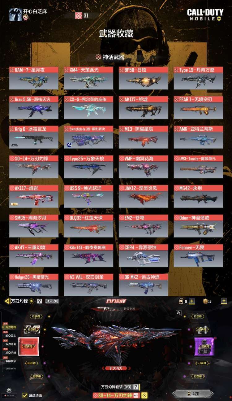 满级万刃灼锋万象天梭星月夜♥全33神话满级精品105橙雪林动能战神♥满级天策离散焕光日蚀永别丹青